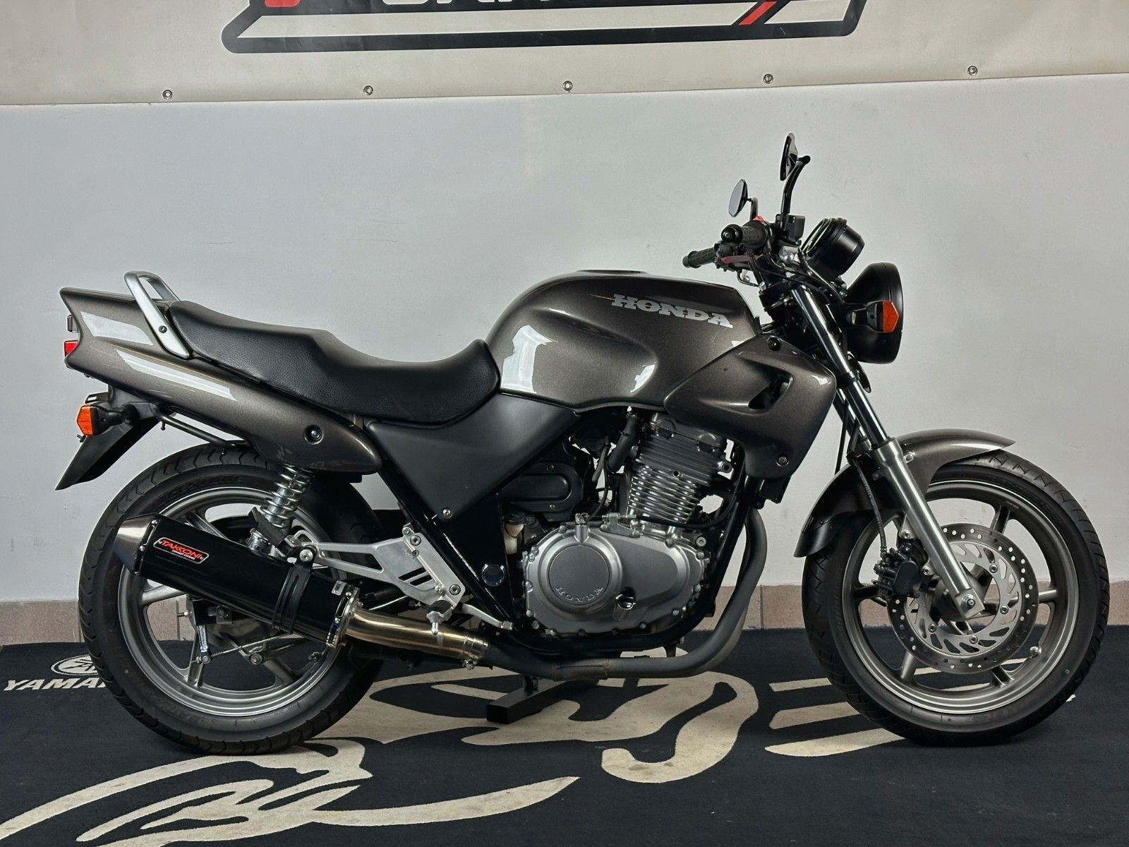 Zum Verkauf steht eine Honda CB500 aus 1995 in Grau Metallic. Verbaut wurden Highsider Spiegel und ein Takkoni Sportauspuff mit einem sehr schönen Klang.
