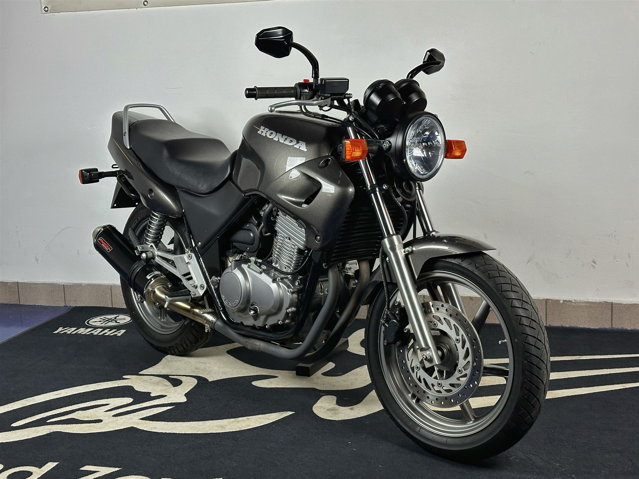 Honda CB500 in Metallic Grau aus 1995. Die Maschine hat eine Laufleistung von nur 10.843 km und befindet sich im Topzustand.